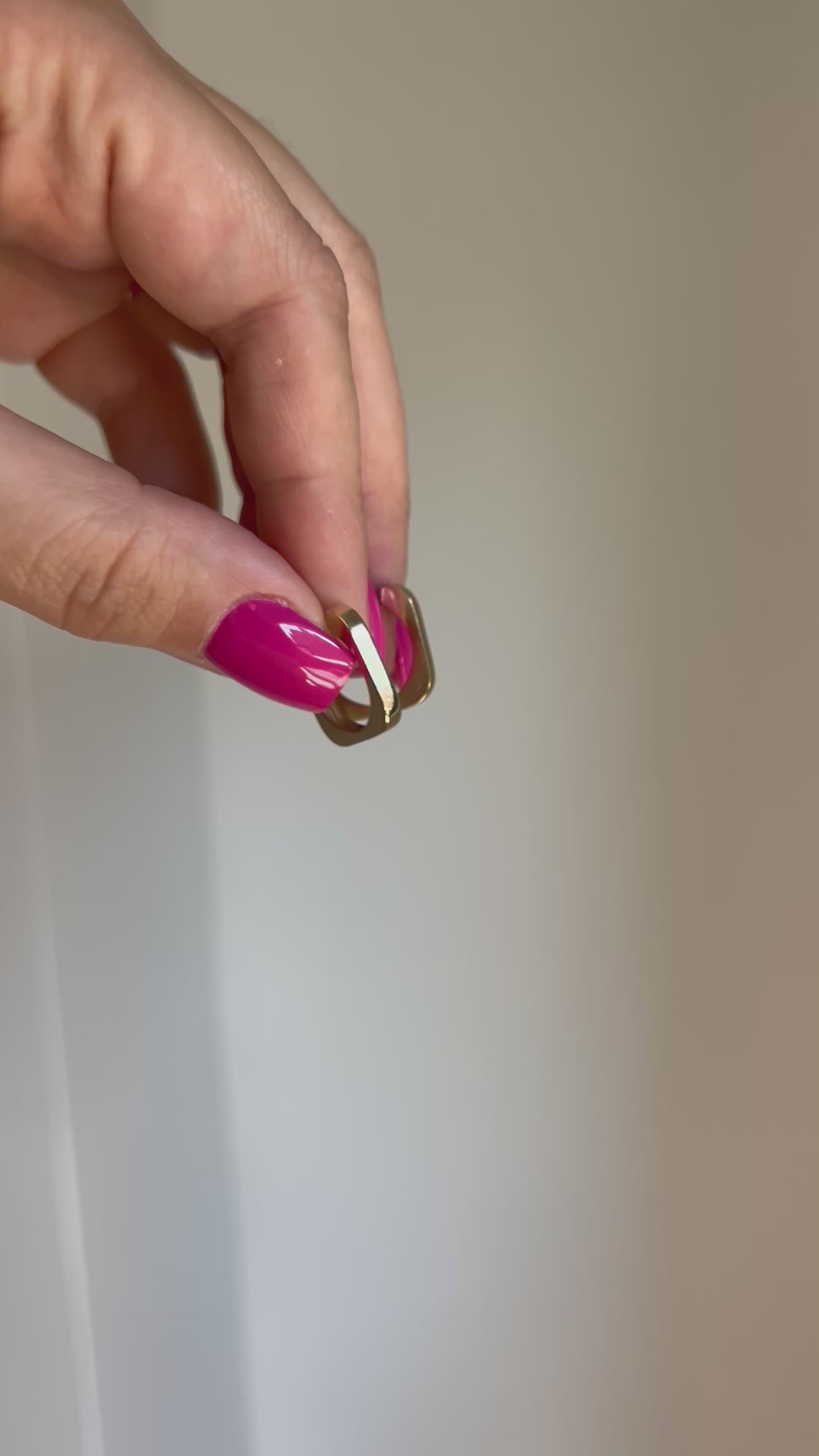 A fun twist on the classic hoop, this pair has a rounded square shape to add an interesting element and unexpected look. The inner diameter of the hoops is 13mm and total weight is 3.4 grams.