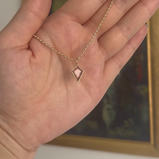 A stunning blush Oregon Sunstone cut into a proprietary “Fantasy Kite” shape for incredible magical sparkle!